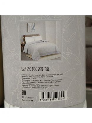 Покрывало евро, 220х200 см, 100% полиэстер, стеганое, Silvano, Мадонна, стальное, AI-2203002