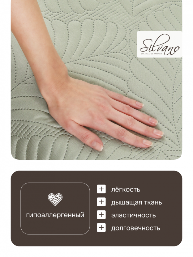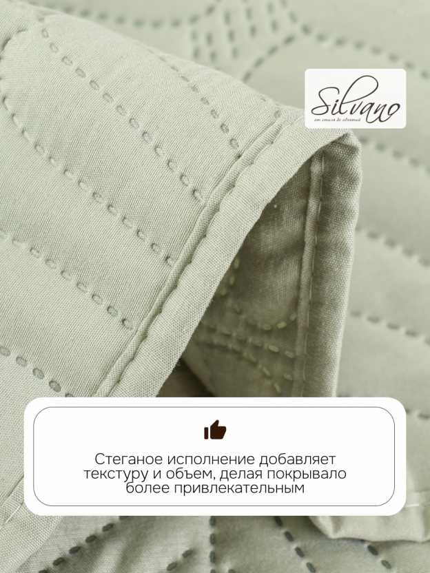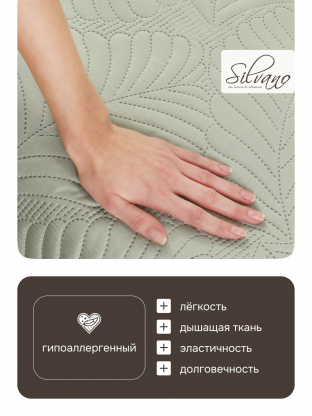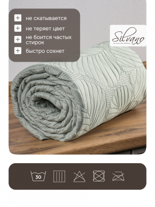 Если сравнивать с аналогичными стегаными покрывалами, Silvano выделяется оптимальным соотношением цены и качества. Оно плотнее и практичнее стандартных вариантов: не теряет форму после стирки, не выцветает и быстро сохнет. Как использовать покрывало? Его можно расстелить на кровати, использовать как защиту для дивана или взять с собой на дачу. Для подарка — универсальный вариант, ведь размер евро подходит большинству стандартных кроватей.