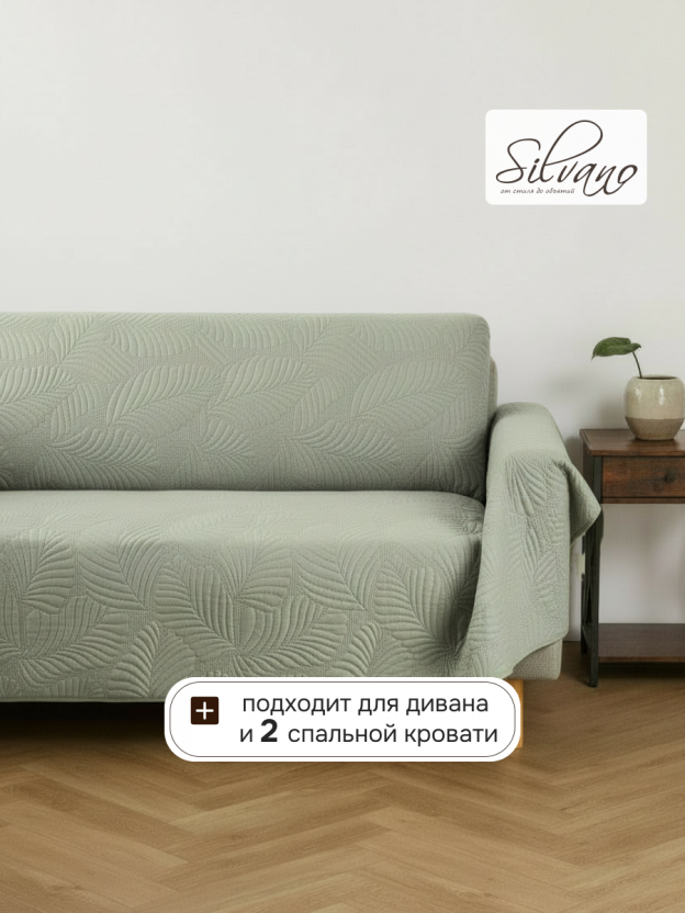 Да, покрывало подходит для дивана: плотная стеганая фактура защищает обивку, а универсальный размер 220х240 см закрывает большую площадь мебели.