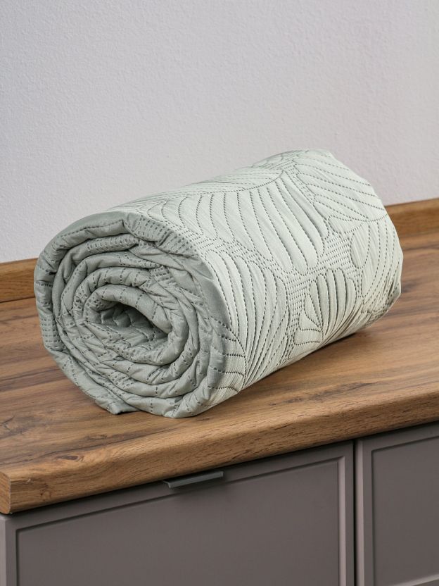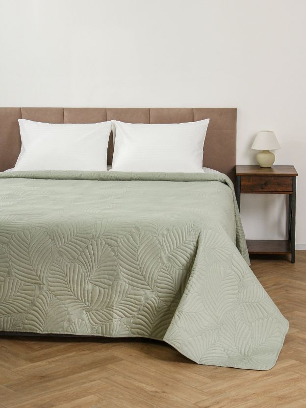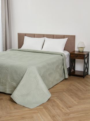 Покрывало евро, 220х240 см, 100% полиэстер, стеганое, Silvano, Фауна, пудрово-зеленое