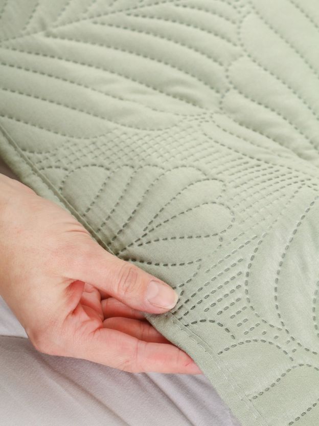 - Стильный пудрово-зеленый оттенок и стеганый узор — гармония уюта и минимализма для любого интерьера.