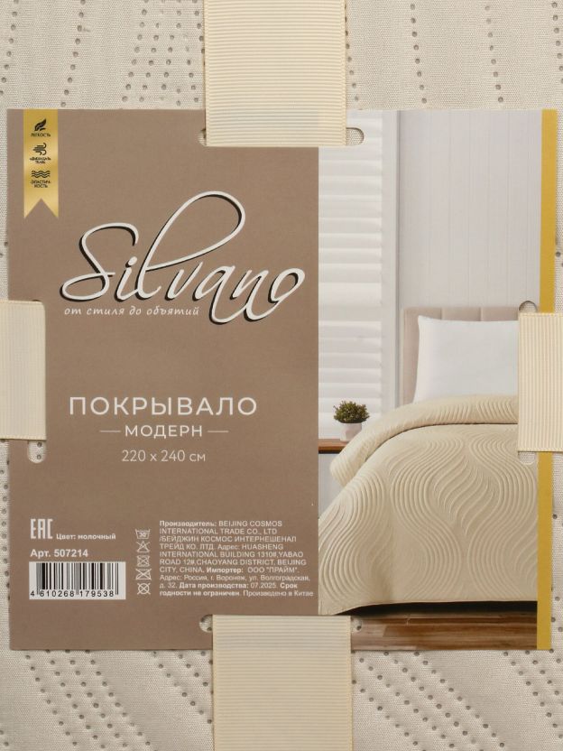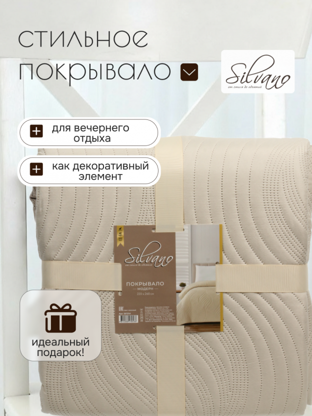 Покрывало евро 220х240 см Silvano Модерн — стильный уют и защита мебели: 100% полиэстер, современный дизайн, идеальный размер для спальни и гостиной.