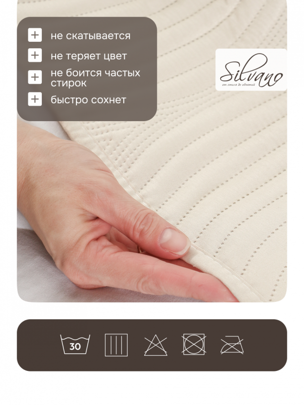 Покрывало евро размера 220х240 см Silvano Модерн — это универсальное решение для тех, кто ищет, какое покрывало выбрать для спальни или гостиной. Стеганая структура обеспечивает дополнительную прочность, а 100% полиэстер гарантирует долговечность и простоту в уходе: покрывало не требует глажки, быстро сохнет и не выцветает. Молочный цвет смотрится дорого и визуально расширяет пространство, что важно для современных интерьеров в стиле минимализм.