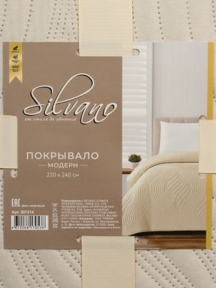 Покрывало Silvano Модерн имеет евроразмер 220х240 см — оптимально для стандартных двуспальных и евро-кроватей, полностью закрывает спальное место и свисает по бокам.