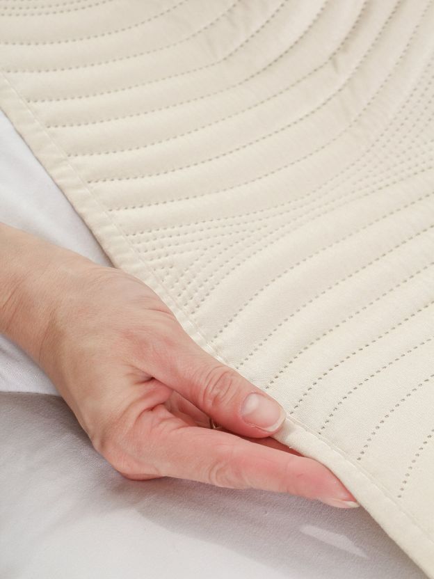 - Евроразмер 220х240 см: полностью закрывает кровать или диван, не скатывается и не теряет форму после стирки.