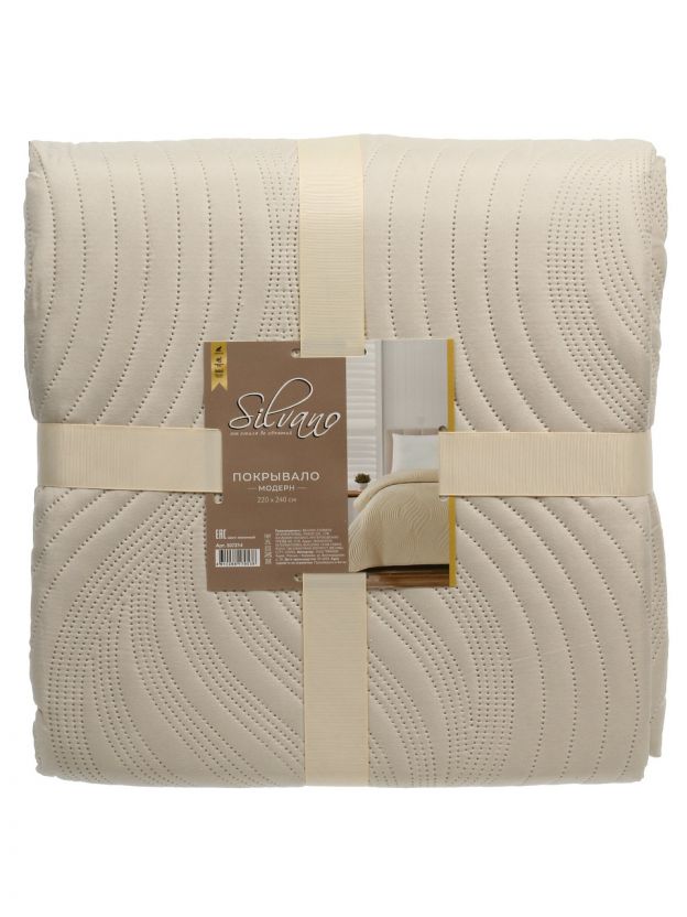 Покрывало евро, 220х240 см, 100% полиэстер, стеганое, Silvano, Модерн, молочное