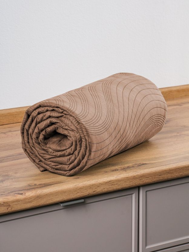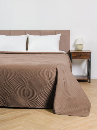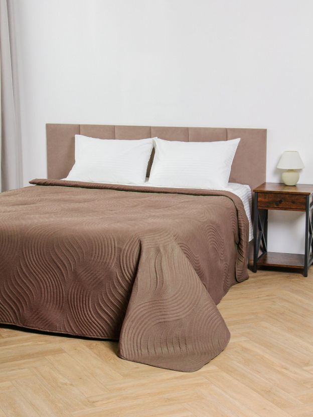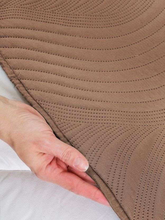 - Современный дизайн: стеганое покрывало в стиле минимализм, оттенок шоколад — легко впишется в любой интерьер.