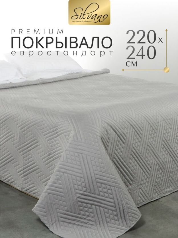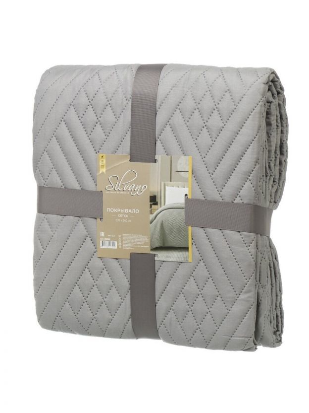 Покрывало евро, 220х240 см, 100% полиэстер, стеганое, Silvano, Сетка, серое