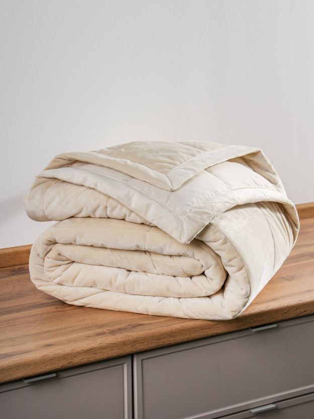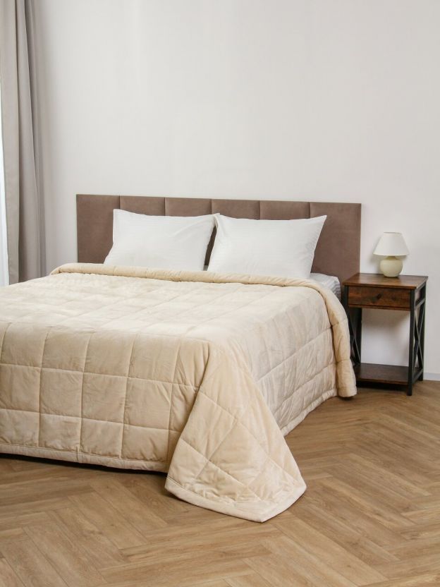 - Эксклюзивный минималистичный дизайн: однотонное стеганое покрывало в универсальном песочном оттенке впишется в любой современный интерьер.