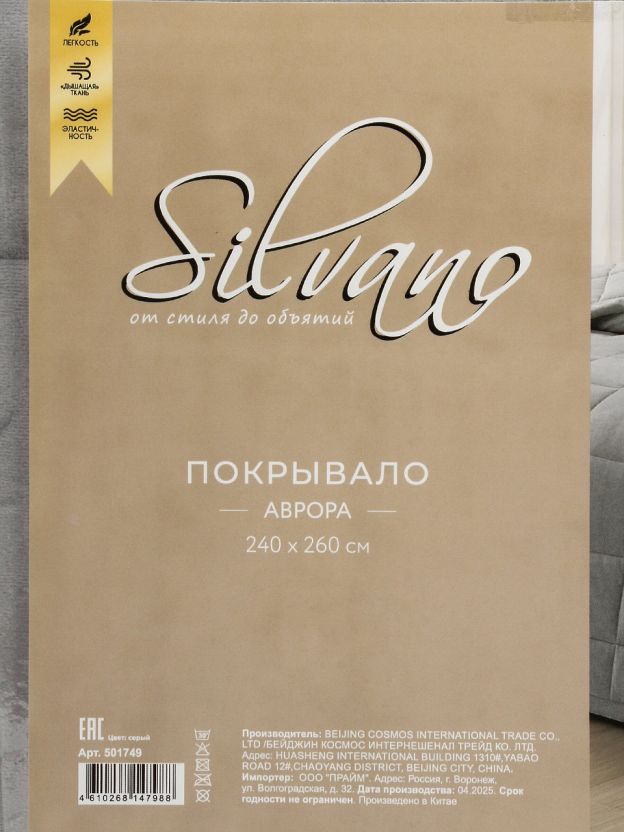 Часто спрашивают: подходит ли покрывало Silvano для дивана или как использовать его на даче? Благодаря большому размеру и легкости материал покрывало действительно удобно использовать не только на кровати, но и как плед для дивана, а также брать с собой на дачу. В отличие от аналогов из хлопка или смесовых тканей, полиэстер устойчив к истиранию, не выцветает и не вызывает аллергию. Если вы выбираете, что лучше для подарка — универсальное покрывало евроформата будет отличным решением.