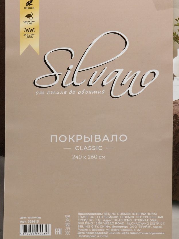 Покрывало евро Silvano Classic 240х260 см: стильный шоколадный оттенок, 100% полиэстер — максимум уюта и практичности для вашей спальни или гостиной.