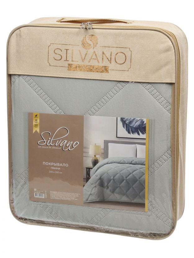 Покрывало евро 240х260 см Silvano Гранни светло-серое — стильная защита и уют для вашей кровати: долговечный полиэстер, минималистичный дизайн, идеальный размер для спальни и гостиной.