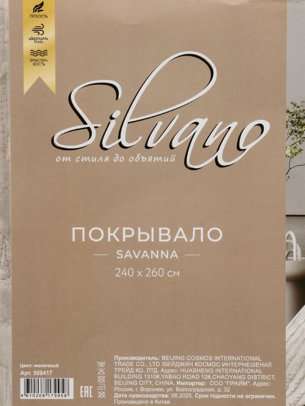 Покрывало евро 240х260 Silvano Savanna: уют, стиль и практичность для вашей спальни. Большой размер, гипоаллергенный полиэстер, универсальный дизайн — купить выгодно онлайн.