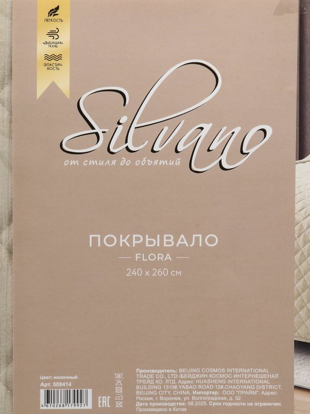 Покрывало евро 240х260 Silvano Flora: стильный минимализм и комфорт в спальне — оптимальный выбор для кровати и дивана, легко ухаживать, подходит для подарка.