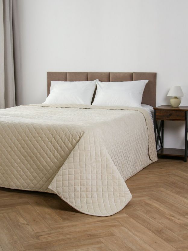 Покрывало евро, 240х260 см, 100% полиэстер, стеганое, Silvano, Flora, молочное
