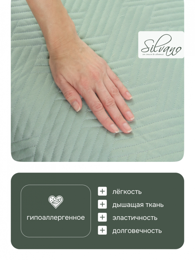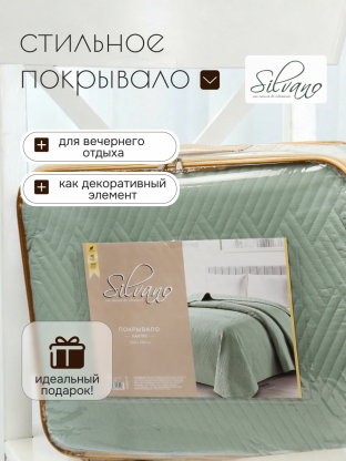 Покрывало евро Silvano Кантри 240х260 см — лучший выбор для тех, кто ищет недорогое покрывало на кровать или диван с современным дизайном. Однотонное серо-мятное покрывало легко впишется в интерьер в стиле минимализм, а прочный полиэстер обеспечивает простоту ухода — достаточно машинной стирки, чтобы сохранить свежесть цвета и формы. Стеганая структура делает покрывало особенно устойчивым к истиранию и сохраняет аккуратный вид даже при ежедневном использовании.