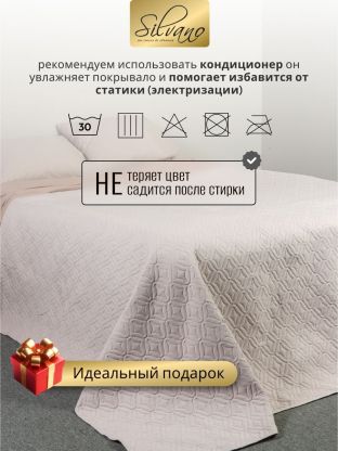 Покрывало евро, 260х220 см, 100% полиэстер, стеганое, Silvano, Ультрасоник Юла, молочное