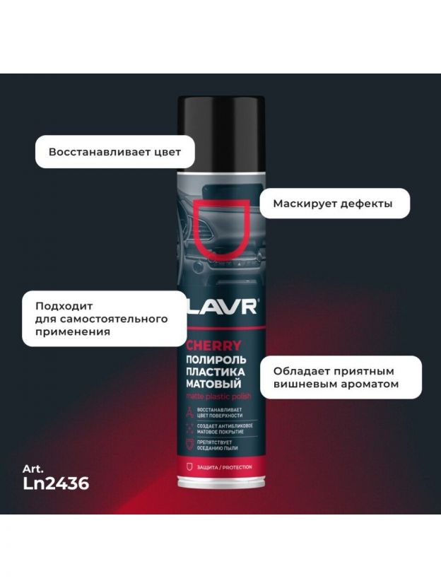Полироль для пластика, матовый, аэрозольный, Lavr, Cherry, 400 мл, Ln2436