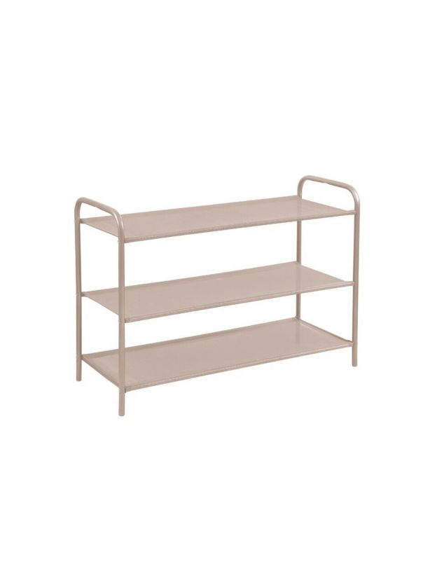 Полка для обуви Nika ЭПС3: компактное хранение до 9 пар, прочная конструкция из металла и текстилена, стильный беж металлик — идеальное решение для порядка в прихожей.