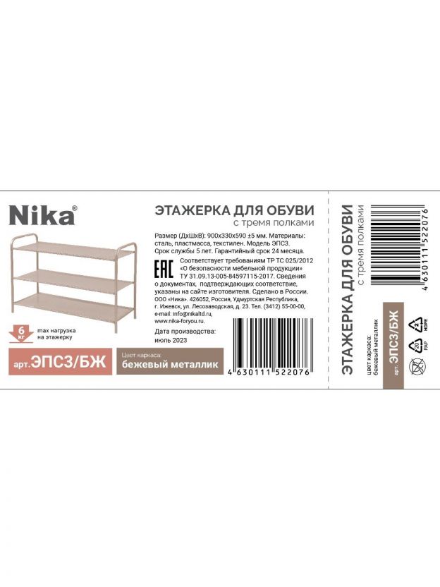 Как собрать полку для обуви? Все элементы легко соединяются без инструментов, инструкция прилагается в комплекте. Если вы сравниваете, чем отличается металлическая полка от пластиковой, обратите внимание на срок службы и устойчивость — Nika ЭПС3 прослужит дольше и выдержит ежедневную нагрузку.