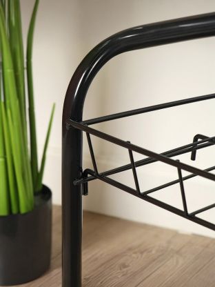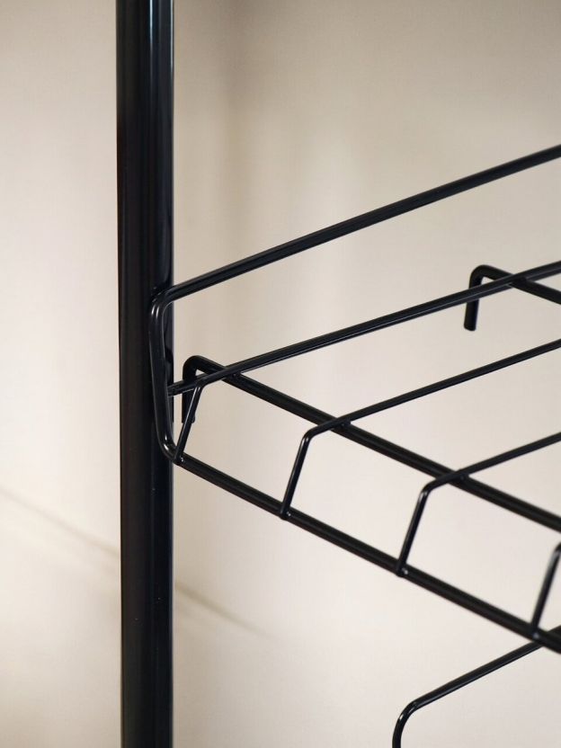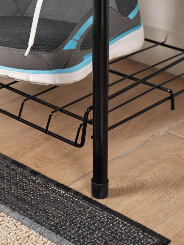 Этажерка НИКА ЭТ2/Ч – недорогое и удобное в использовании изделие. Максимально допустимая нагрузка – 20 кг. Специальное покрытие защищает конструкцию от возникновения и развития коррозийных процессов из-за соприкосновения с влажной обувью. Включенные в комплект пластиковые колпачки на ножки предохранят напольное покрытие от царапин и придадут всей конструкции большую устойчивость.