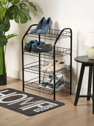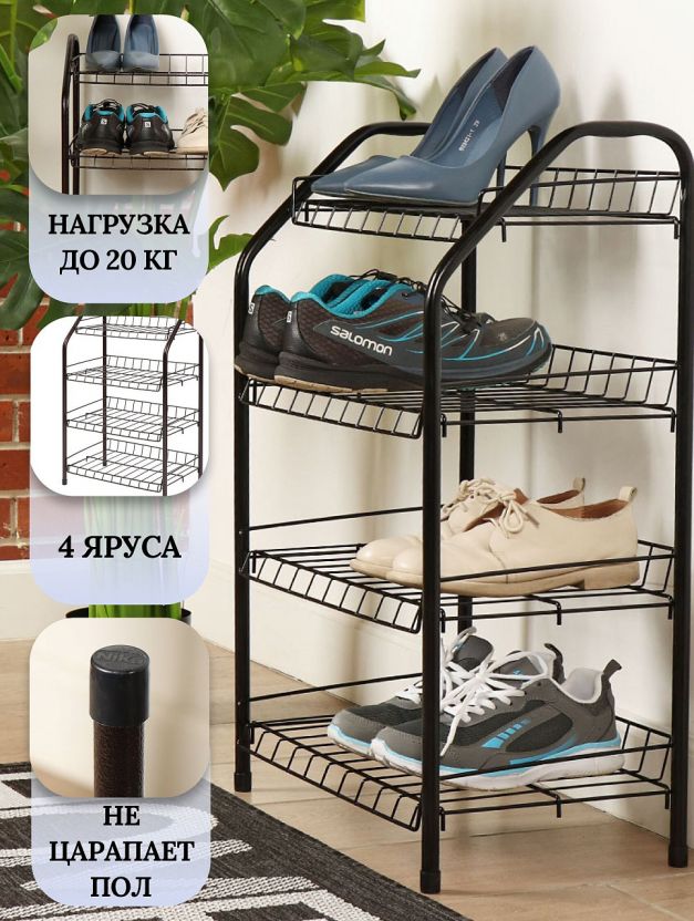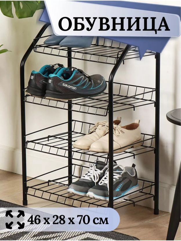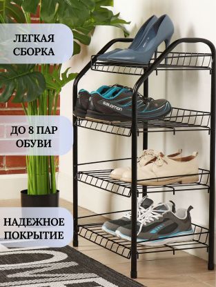 Полка для обуви, металл, 4 секции, 46х28х70 см, разборная, черная, Nika, ЭТ2/Ч