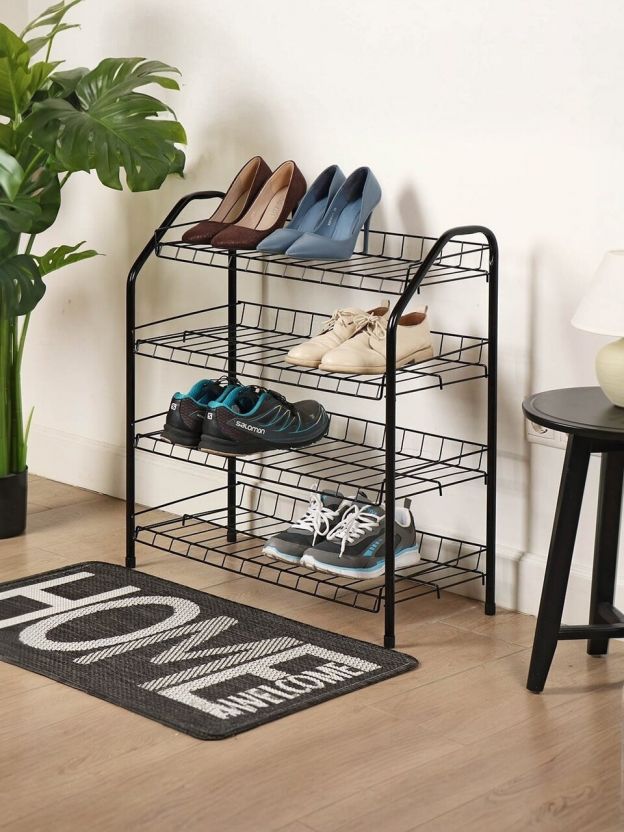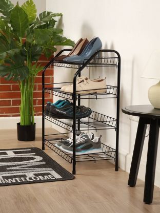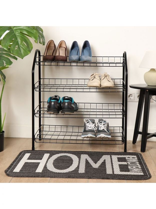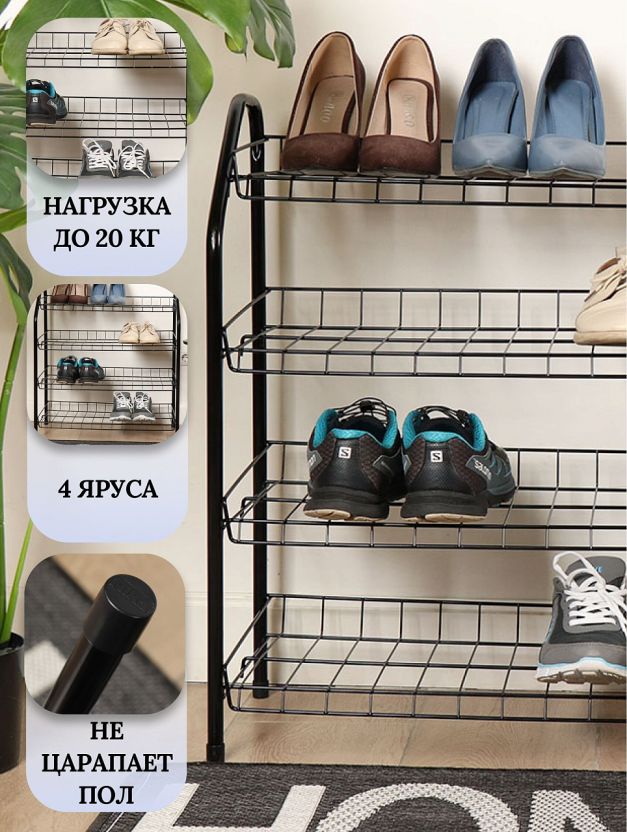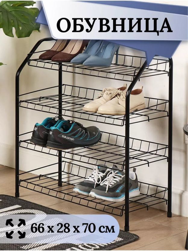 Полка для обуви, металл, 4 секции, 66х28х70 см, разборная, черная, Nika, ЭТ1/Ч