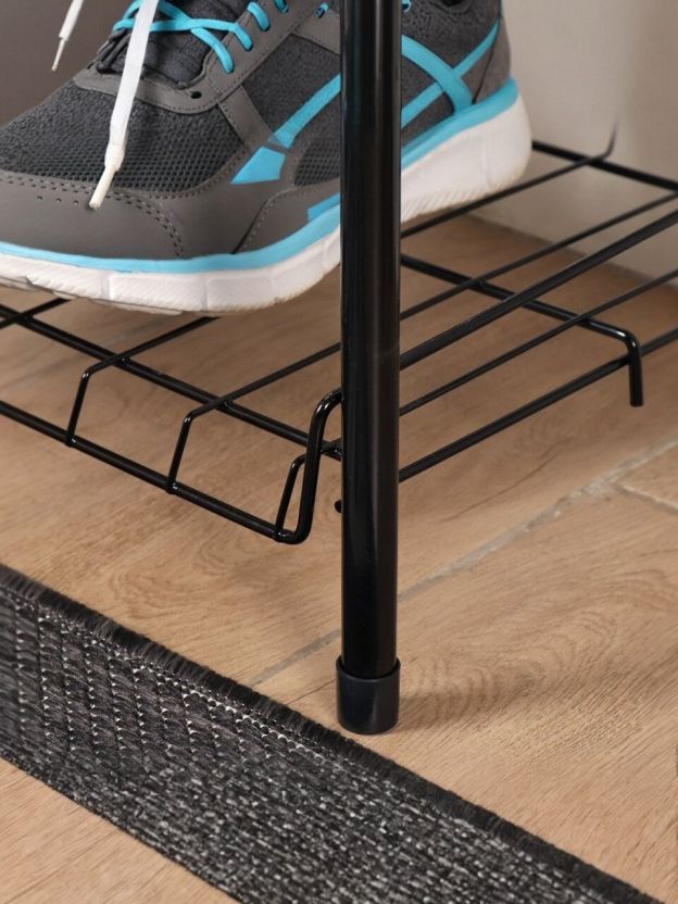 Этажерка НИКА ЭТ1/Ч – недорогое и удобное в использовании изделие. Максимально допустимая нагрузка – 20 кг. Специальное покрытие защищает конструкцию от возникновения и развития коррозийных процессов из-за соприкосновения с влажной обувью. Включенные в комплект пластиковые колпачки на ножки предохранят напольное покрытие от царапин и придадут всей конструкции большую устойчивость.