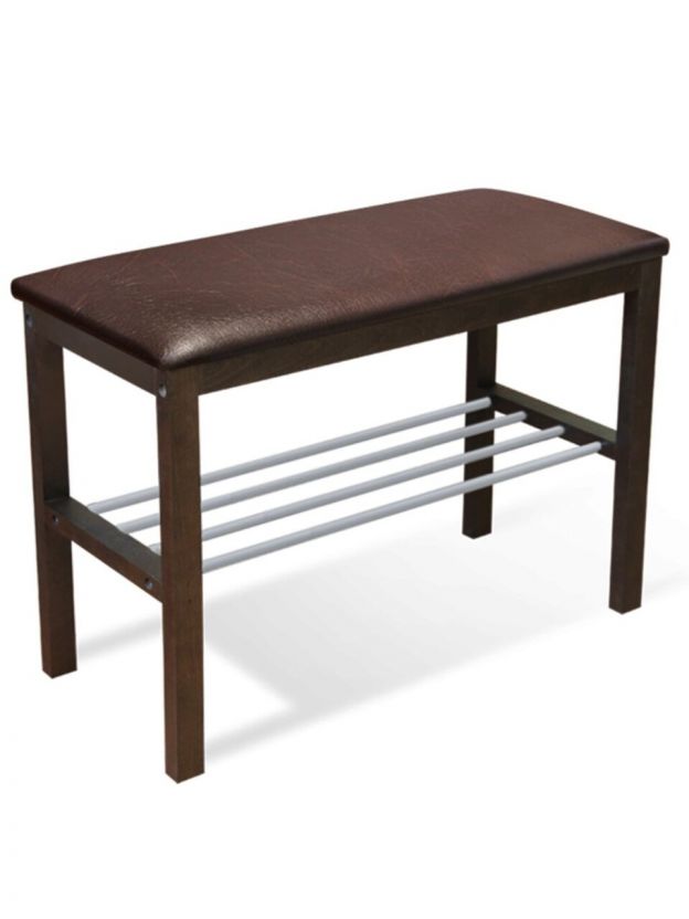 Полка для обуви, металл, дерево, 2 секции, 67х31х49 см, с сиденьем, коричневый, венге, Sheffilton, Альберо, SHT-B2