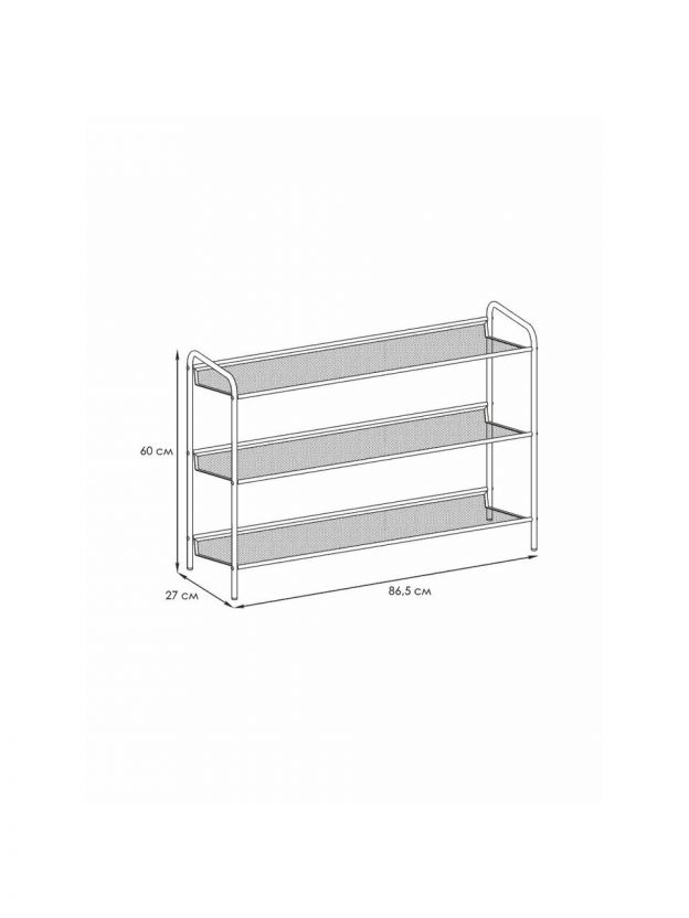 Полка для обуви металл, пластик, 3 секции, 86.5х27х60 см, черная, ЗМИ, Женева 33, ПДО Ж33 Ч