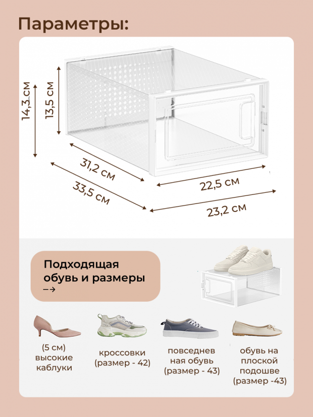 Откройте для себя удобство и стиль с полкой для обуви LSP12SWT. Эта пластиковая полка для обуви станет идеальным решением для организации вашего пространства. Благодаря своему современному дизайну и функциональности, она не только сохранит порядок, но и добавит изюминку вашему интерьеру. Полка выполнена в белом цвете, что позволяет ей гармонично вписаться в любой интерьер.