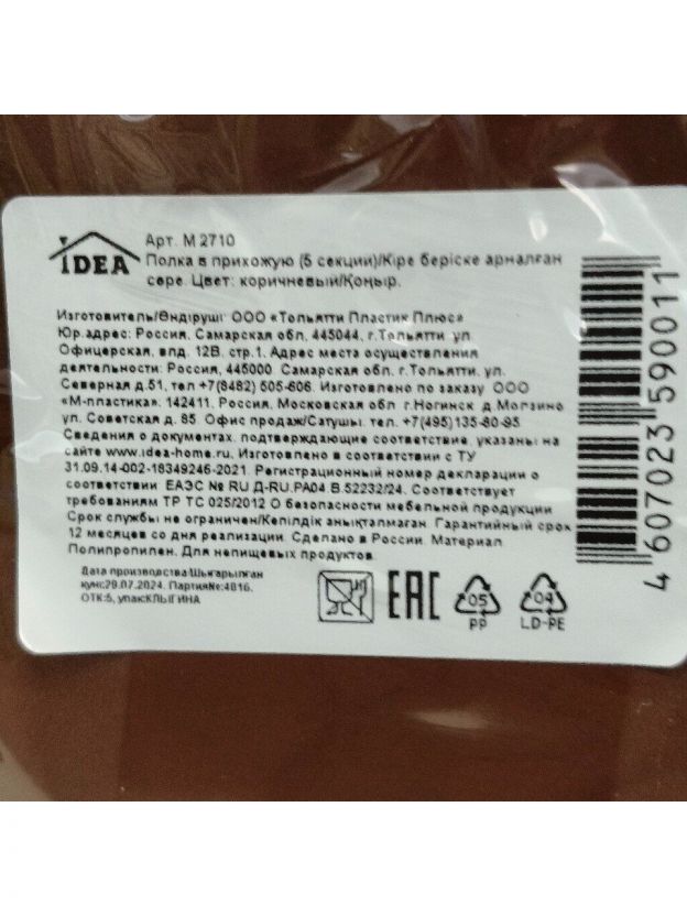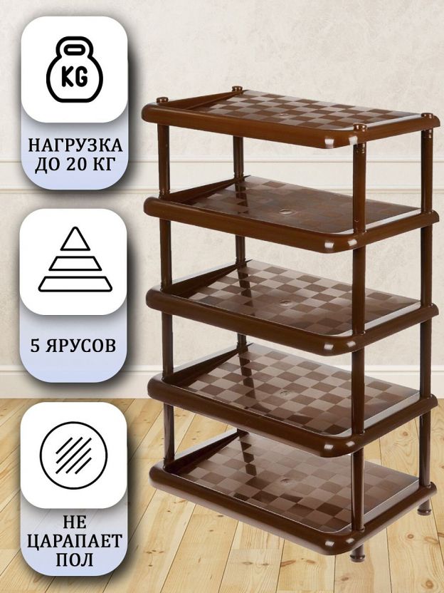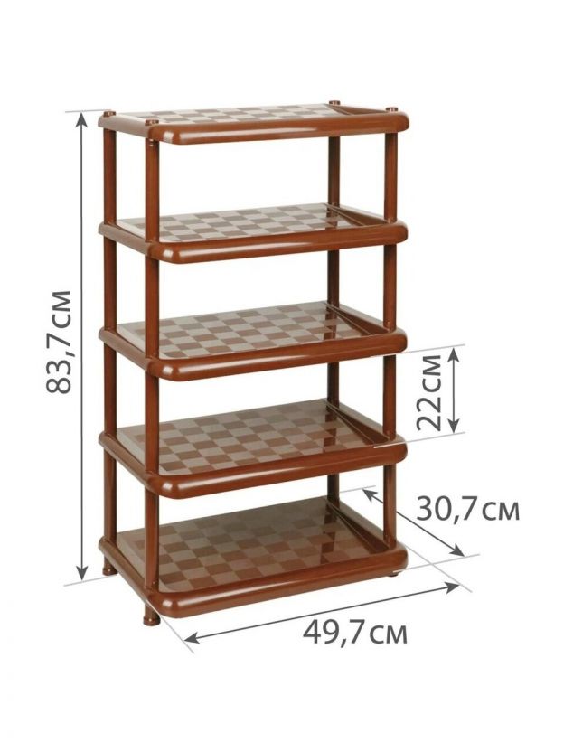 Полка для обуви, пластик, 5 секций, 49.7х30.7х83.7 см, коричневая, Idea, М2710