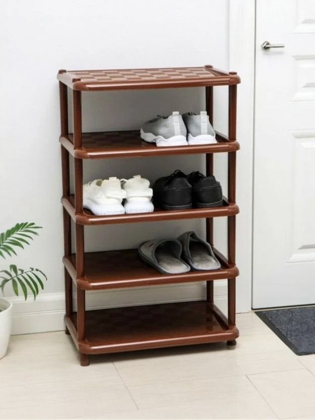 Этажерки для обуви в прихожую отлично подходят для экономии места в коридоре. Полки для обуви являются прекрасным решением для того, чтобы рационально использовать имеющееся в вашем доме пространство. Благодаря тому, что полка состоит из пяти ярусов, вы сможете разместить на ней много обуви, занимая при этом меньше места.