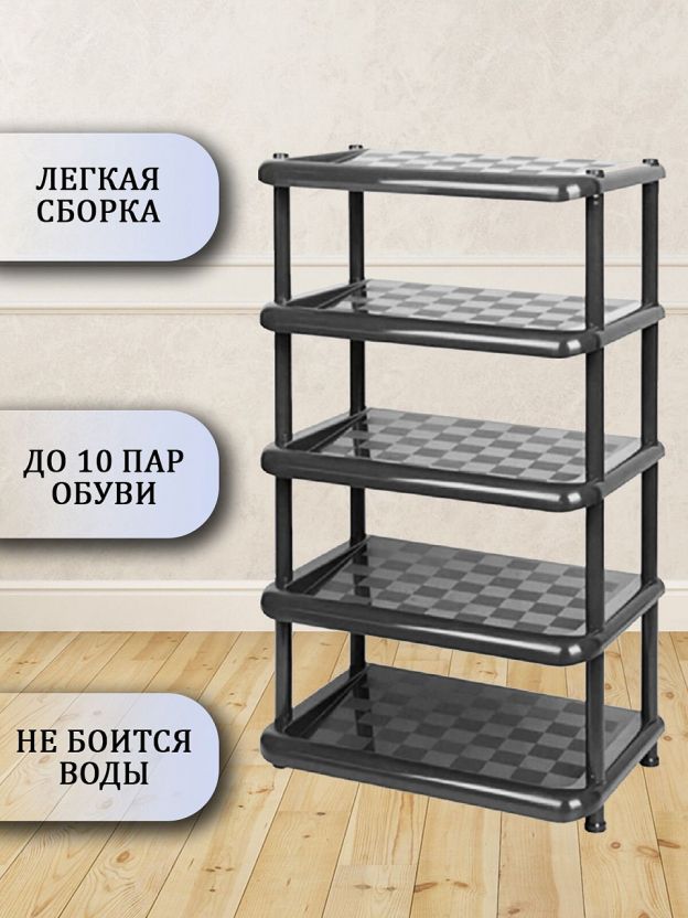 - Этажерка выполнена из высококачественного пластика и предназначена для хранения обуви в прихожей;