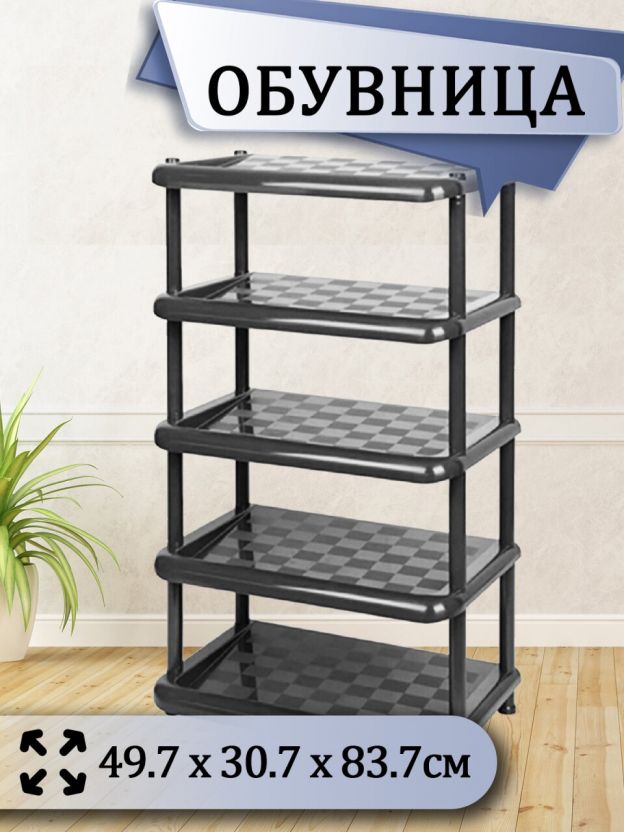 Полка для обуви, пластик, 5 секций, 49.7х30.7х83.7 см, металлик/графит, Idea, М2710