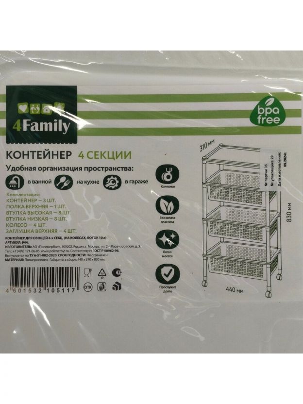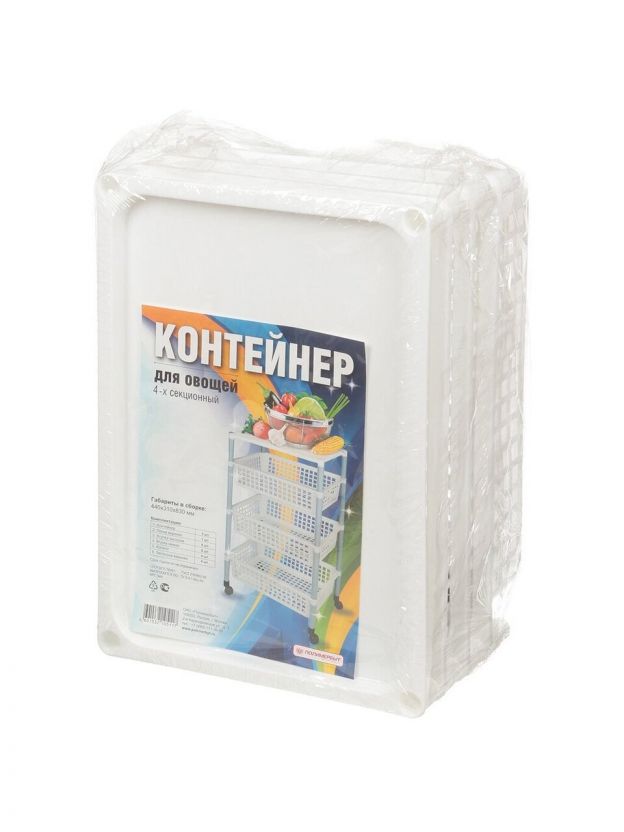 Полка для овощей, пластик, 4 секции, 44х31х83 см, на колесах, Полимербыт, С944