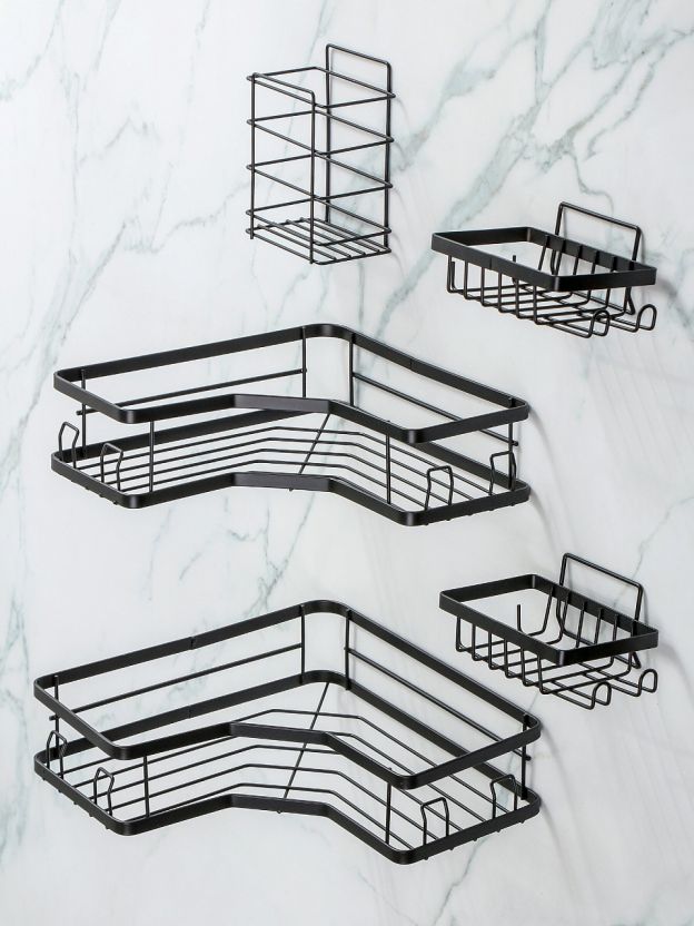 Комплект полок для ванной (5 пр.) — стильное решение для организации пространства: 2 полки, подставка под щётки, 2 мыльницы. Прочный металл, защита от влаги, выгодно для дома и дачи.