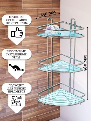 Полка для ванной металл, 3 яруса, угловая, 58х23 см, хром, Y3-764 – современное решение для рационального хранения ванных принадлежностей и создания аккуратного пространства. Модель с тремя вместительными ярусами позволяет удобно разместить шампуни, гели, мыло, косметику и аксессуары, сохраняя порядок даже в небольшой ванной комнате. Угловая конструкция экономит место и гармонично вписывается в интерьер любого стиля. Хромированное покрытие придает изделию стильный внешний вид и обеспечивает дополнительную защиту от влаги и коррозии.