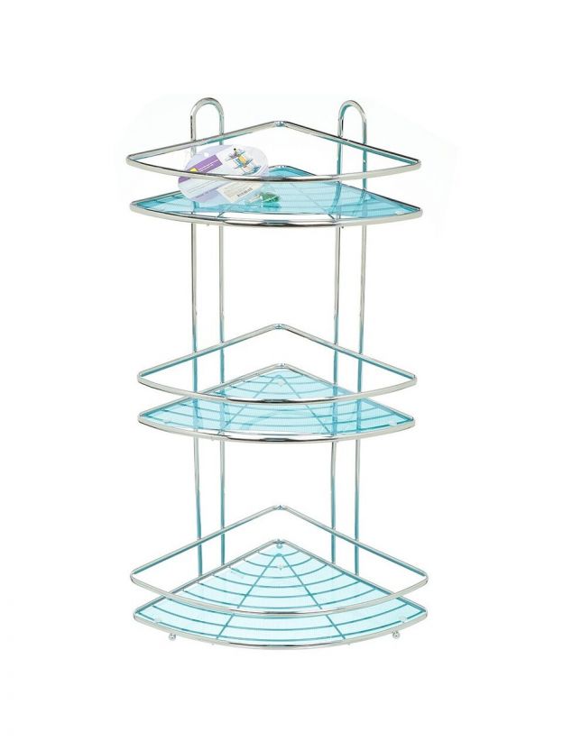 Полка для ванной металл, настенная, 3 яруса, угловая, 58х23 см, хром, Y3-764