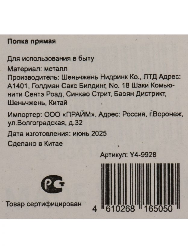 Какой вес выдерживает металлическая полка Y4-9928?