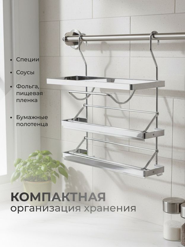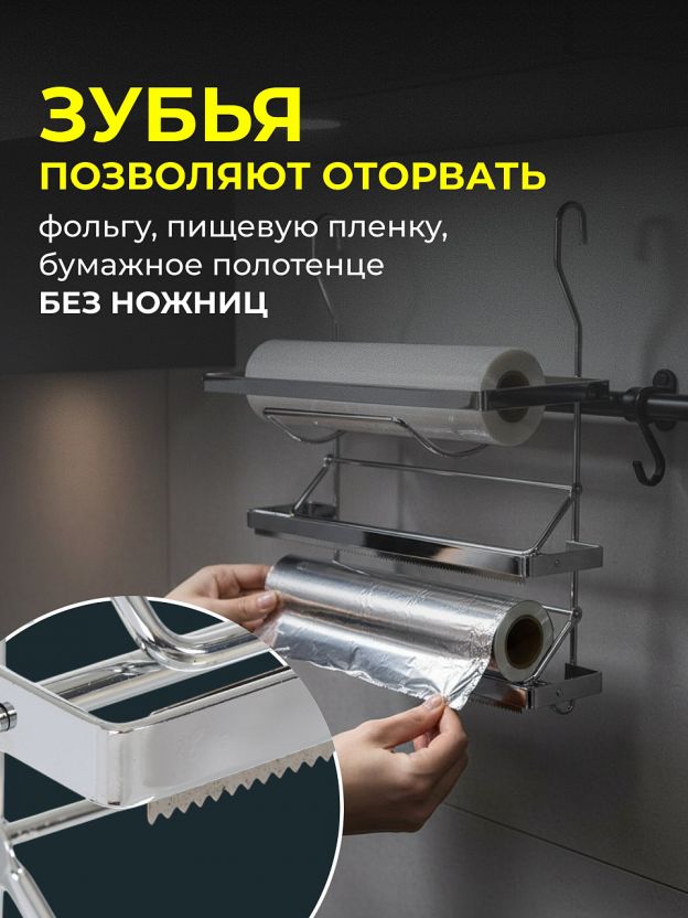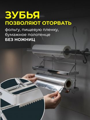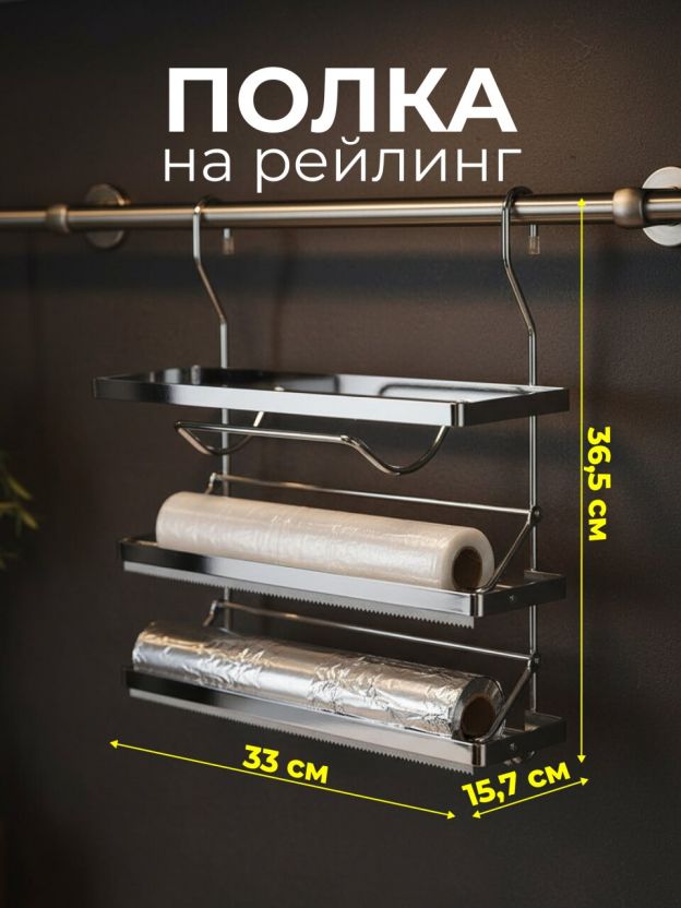 Полка на рейлинг для рулонов и фольги, 33х15.7х36.5 см, зубчатая, U000042