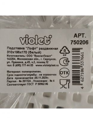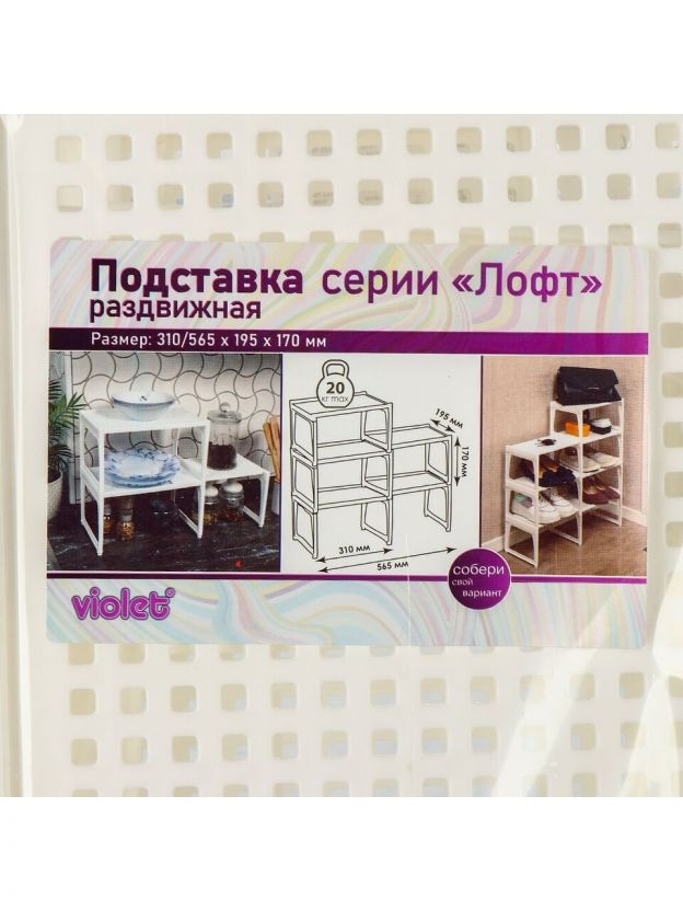 Полка настольная, пластик, 2 секции, 31х19.5х17 см, раздвижная, белая, Violet, Ротанг, 750206