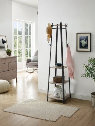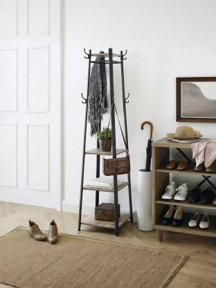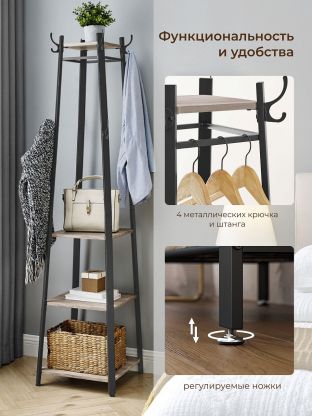 Если вы ищете, какой стеллаж лучше выбрать для организации хранения вещей, обратите внимание на универсальность модели: она подходит для верхней одежды, обуви, аксессуаров, а также может использоваться в офисе или бутике. Отсутствие колес делает конструкцию устойчивой, а отсутствие лишних деталей — легкой в уходе.