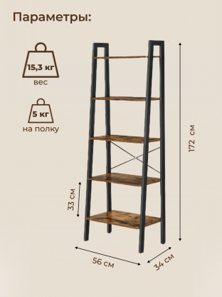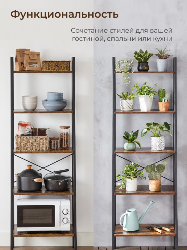 5-уровневые открытые полки: веерообразные полки обеспечивают достаточно места, что идеально подходит для хранения любых предметов, которые вы хотите показать.