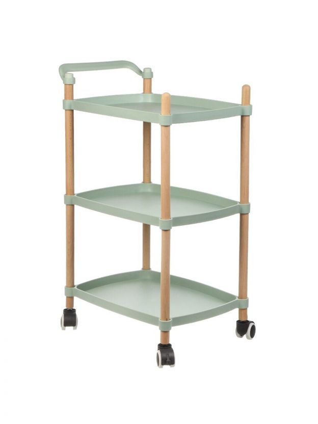 Полка универсальная, пластик, 3 секции, 45х32х77 см, на колесах, зеленая, Y4-8664