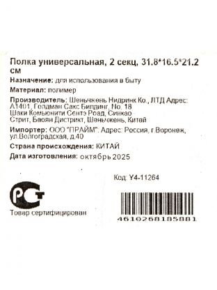 Полка универсальная пластиковая Y4-11264 — это практичная система хранения для дома, дачи или офиса. Благодаря открытой конструкции и бортикам на каждом из двух ярусов вы легко разместите бытовую химию, косметику, инструменты, игрушки или кухонные принадлежности. Часто спрашивают: «Как использовать такую полку?» — просто поставьте её на пол, стол или полку, не требуется сверлить стены и крепить, что особенно удобно для арендуемых помещений или временных решений.