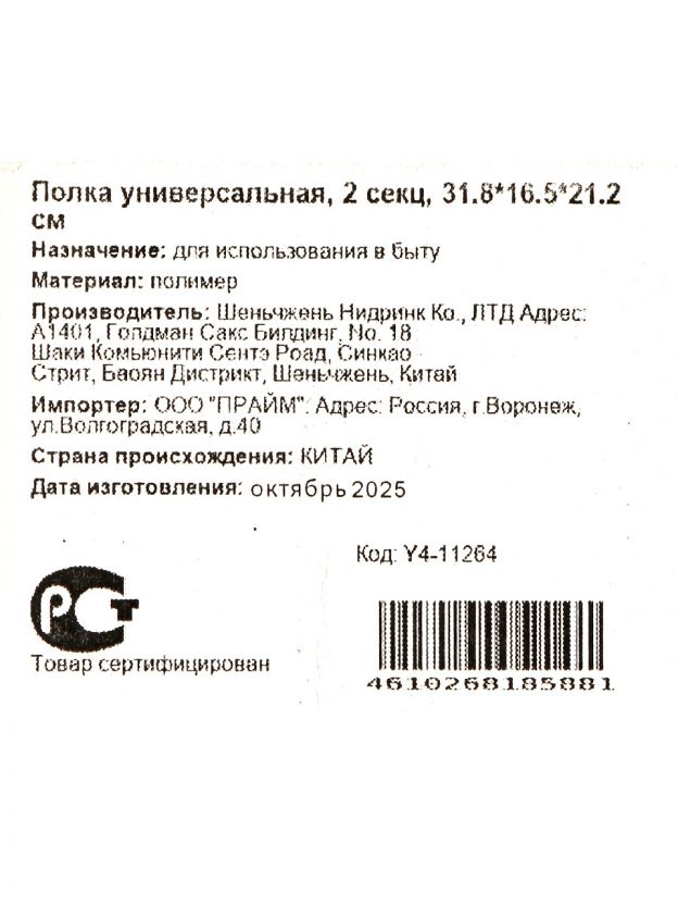 Оформите заказ на универсальную пластиковую полку Y4-11264 прямо сейчас — получите функциональное решение для хранения по выгодной цене с быстрой доставкой.