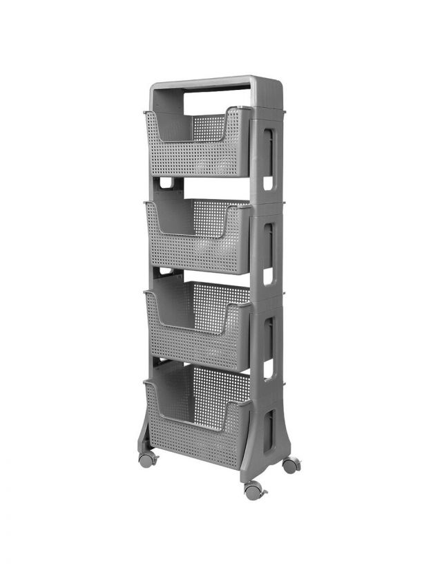 Полка универсальная, пластик, 4 секции, на колесах, серая, Violet, Лофт, 770418
