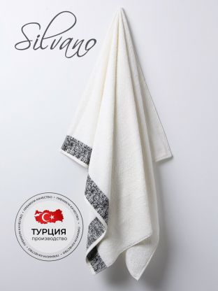 Полотенце банное 100х150 см, 100% хлопок, 450 г/м2, Рейн, подарочная упаковка, Silvano, белое, черный борт, Турция