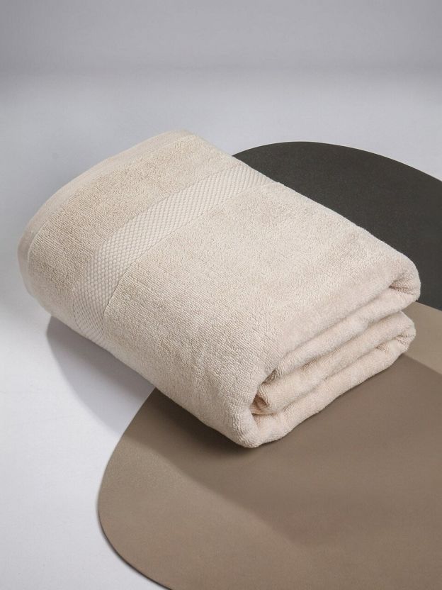 Полотенце банное 100х180 см, 100% хлопок, 400 г/м2, Spa, Silvano, бежевое, Узбекистан